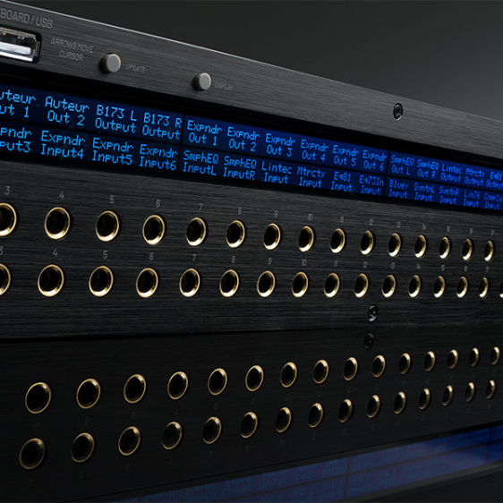 48-punktowa krosownica TRS z pozłacanymi złączami, 3-kierunkowym przełączaniem i personalizowanymi wyświetlaczami LED
