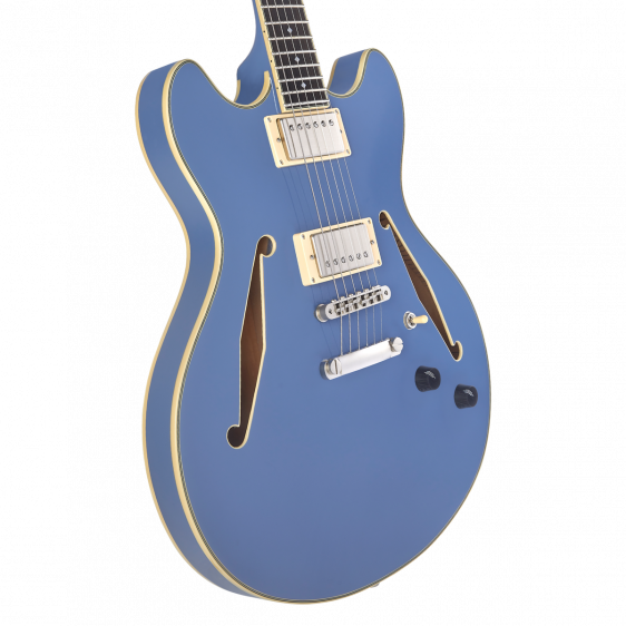 16-calowy semi-hollow z głębokimi wycięciami i lekki DC oferuje wyjątkową wszechstronność gatunkową. Brak pickguardu i inspirowane latami 30-tymi diamentowe otwory f dodają oldschoolowego uroku.