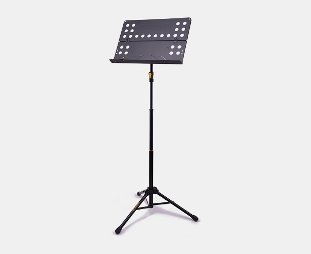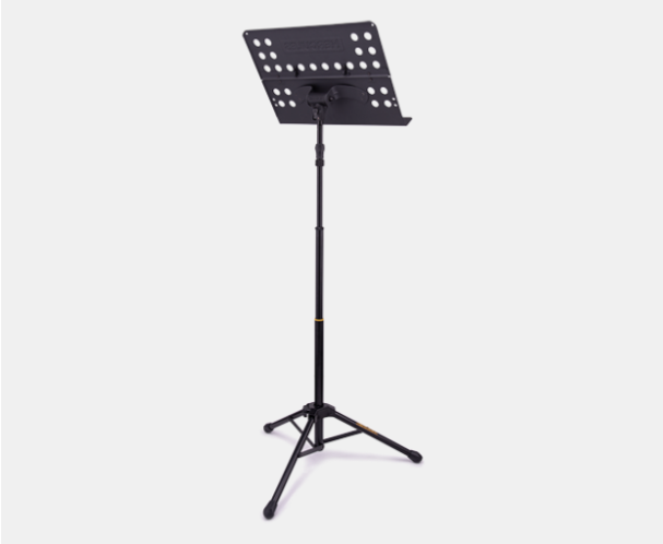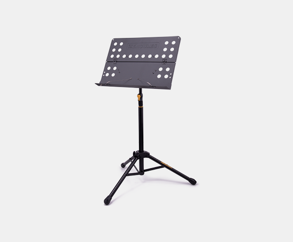 Półtorametrowy stojak na nuty HERCULES BS418B+ wyposażony jest w system regulacji wysokości EZ Grip, perforowaną składaną półkę, składaną podstawę trójnożną oraz druciane uchwyty na nuty. W zestawie znajduje się zacisk H-Clip.