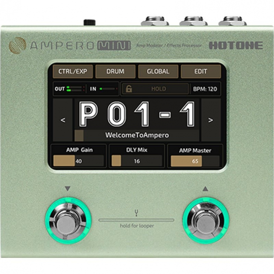 Aluminiowa konstrukcja zapewnia trwałość i estetykę, zachowując jednocześnie niewielkie rozmiary. Ampero Mini z łatwością mieści się w torbie gitarowej lub na zatłoczonym pedalboardzie, oferując kompletne rozwiązanie brzmieniowe bez kompromisów.