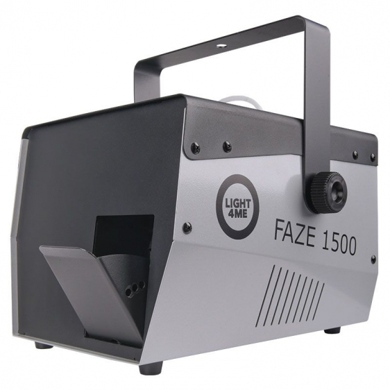 Light4Me Faze 1500 to wytwornica dymu typu hazer. Maszyna może przez dłuższy czas pracować w sposób ciągły, a objętość wytwarzanej pary oraz prędkość pracy wentylatorów, a co za tym idzie siła wydmuchu, są regulowane i mogą być dopasowane do konkretnego charakteru wydarzenia. Bardzo przydatną funkcją jest również Timer. Dzięki niej możliwe jest ustawienie czasu ciągłej emisji w przedziale od 1 do 200 sekund, a także interwału czasowego między kolejnymi emisjami dymu. To sprawia, że Faze 1500 może tworzyć lekką mgłę uwidaczaniającą światło na planach programów telewizyjnych z udziałem publiczności, planach filmowych, zdjęciowych, a także gęstą mgłę na imprezach techno i DJ party.