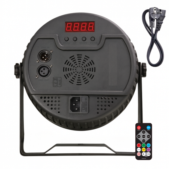 Typ urządzenia: reflektor sceniczny par z pilotem bezprzewodowym i uchwytami montażowymi