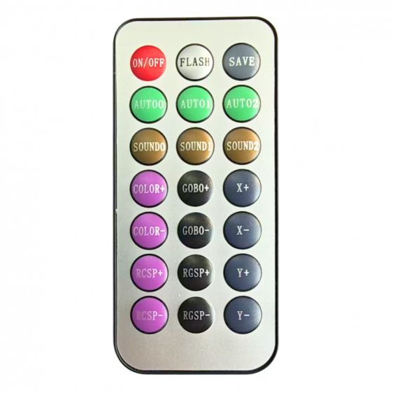 Sterowanie: automatyczne, DMX, pilot bezprzewodowy na podczerwień (IR), ręczne