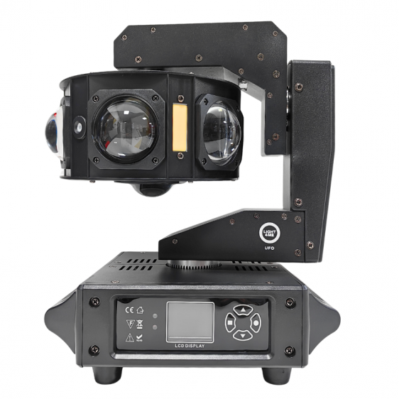 Light4Me Ufo jest niezwykle prosty w obsłudze dzięki intuicyjnemu panelowi sterowania, składającego się z czytelnego wyświetlacza LED i 4 poręcznych przycisków ✔️. Urządzeniem można sterować ręcznie, a oprócz tego użytkownicy mogą wybierać spośród 4 trybów pracy: auto, sound, master/slave oraz DMX, co docenią zwłaszcza mobilni DJ i organizatorzy eventów ✨. Dzięki złączom danych DMX można połączyć wiele urządzeń i łatwo zarządzać ich pracą z pomocą protokołu DMX. Z tyłu głowicy znajdują się gniazda zasilania powercon, w tym tzw. „podaj dalej” umożliwiające podawanie napięcia bezpośrednio z urządzenia do urządzenia. Pełnozakresowy dimmer pozwala precyzyjnie dostosować jasność poszczególnych efektów świetlnych❗Regulowana prędkość stroboskopu, pełnozakresowa rotacja 0-360°, barwy statyczne i makra efektu ring, efekty kombinacji kolorów umożliwiają dodatkowe wzbogacenie oprawy oświetleniowej i dodanie jej dynamiki ✅.