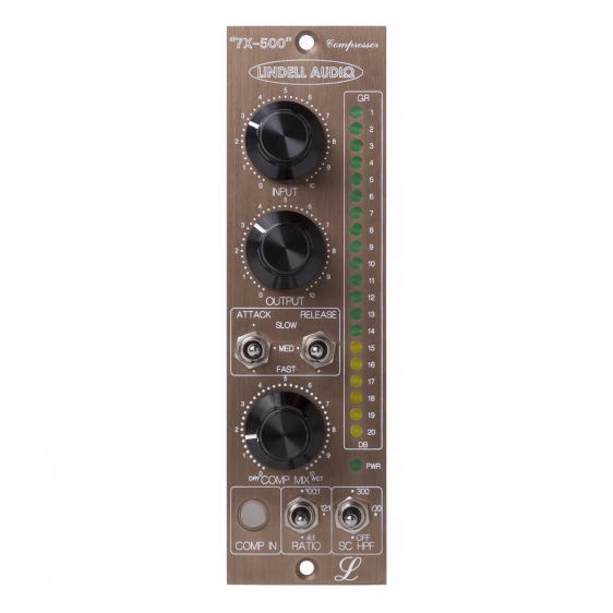 „Siedem X pięćset” to jednokanałowy kompresor/limiter. Jest konstrukcja typu FET (Field Effect Transistor – tranzystor polowy), która zawiera w sobie kilka nowych i wyjątkowych funkcji, takich jak górnoprzepustowy filtr sidechain i pokrętło Mix do regulacji proporcji sygnału podstawowego i przetworzonego (kompresja równoległa). 7X-500 to nasze podejście do klasycznego brzmienia 1176. Może być gładki lub może być rock'n'rollowym potworem przy zastosowaniu współczynnika 100:1 (wszystkie przyciski włączone).
