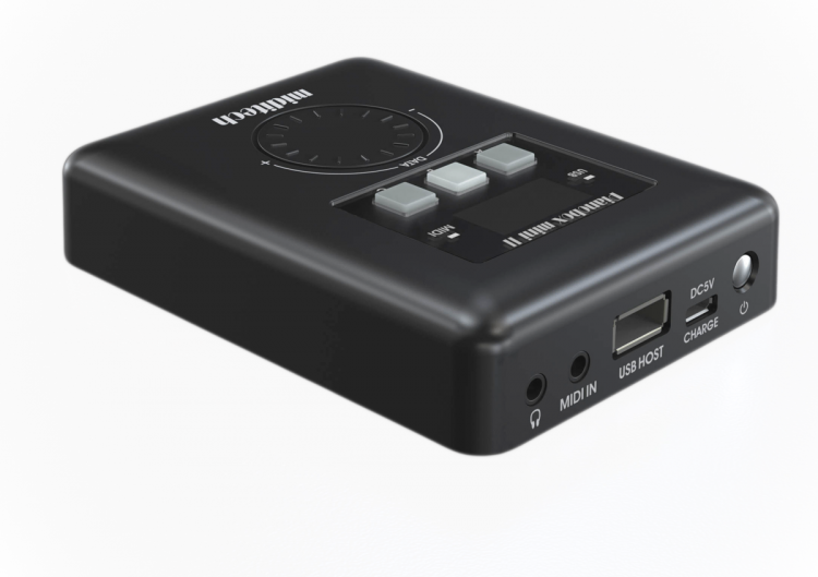 PianoBox mini II to super poręczny moduł dźwiękowy General MIDI z najprostszą obsługą, dodaje 128 brzmień General MIDI do każdej klawiatury master. Dzięki wbudowanemu złączu USB host i akumulatorowi litowo-jonowemu 2500 mAh z możliwością ładowania.