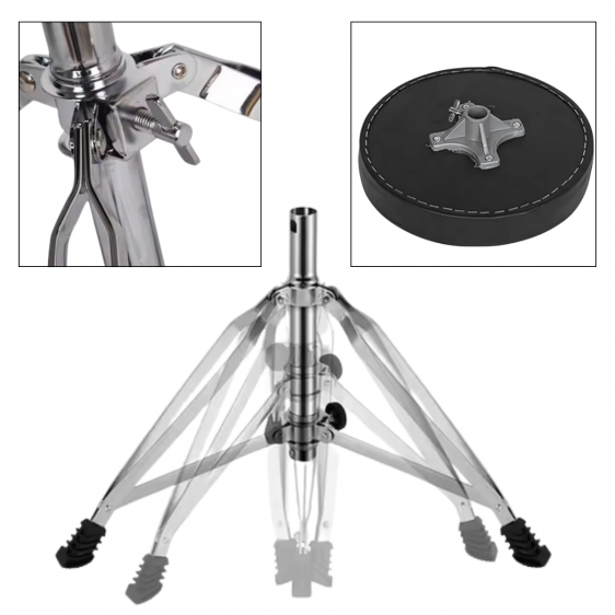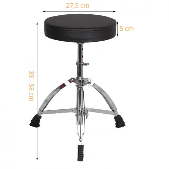Antypoślizgowe, gumowe nóżki zapewniają pewne podparcie na każdej powierzchni ✳️. Nawet podczas energicznej gry stołek nie przesuwa się i nie chwieje ✴️. Galwanizowany, żelazny stelaż odporny na uszkodzenia to gwarancja trwałości *️⃣. Maksymalne obciążenie do 50 kg czyni ten model świetnym wyborem dla młodszych perkusistów ✅.