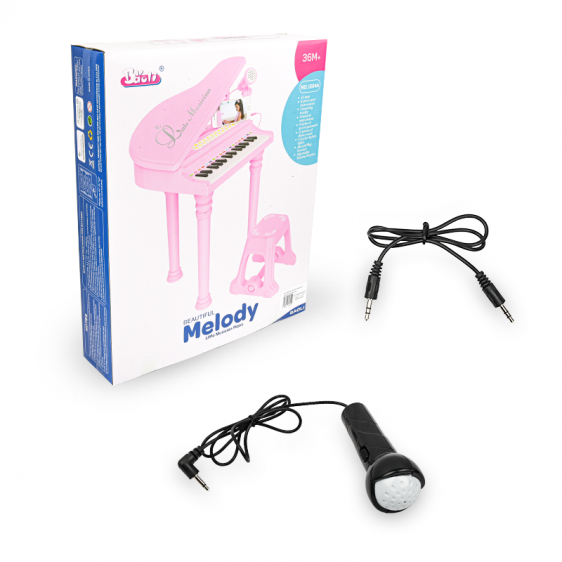 NN PIANINO KASIA to elektroniczny fortepian dla dzieci w zestawie z ✅ mikrofonem i krzesełkiem. Instrument posiada 37 mini-klawiszy idealnie dopasowanych do małych rączek. Organy oferują szereg ciekawych brzmień, podkładów muzycznych i funkcji, dzięki którym najmłodsi świetnie się bawią. Grę można ćwiczyć samemu albo podłączyć do klawiszy zewnętrzny odtwarzacz muzyki lub smartfon i grać do swoich ulubionych piosenek. Dołączony mikrofon pozwala na ✅ zabawy karaoke, a funkcja nagrywania i odtwarzania utworów sprawia, że dzieci mogą poczuć się jak prawdziwe gwiazdy!
