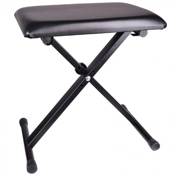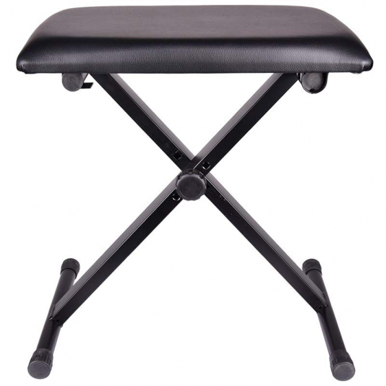NN XA to solidna, składana ława do pianina, fortepianu lub innych instrumentów klawiszowych, posiadająca konstrukcję w układzie krzyżowym (X). Jej rama w całości wykonana została ze stalowych profilów i rurek pomalowanych proszkowo na kolor czarny, dzięki czemu jest odporna na zarysowania i rdzę. 3-punktowa regulacja wysokości zapewnia optymalne ustawienie stołka dopasowane do indywidualnych preferencji użytkownika, a dwie podłużne nogi gwarantują dużą stabilność całej konstrukcji. Siedzisko posiada wypełnienie z miękkiej gąbki technicznej. Pokryte jest czarną, ekologiczną skórą, dzięki czemu ma dużą odporność na przetarcia i łatwo się je czyści. Taboret do pianina NN XA stanowi doskonały wybór dla osób szukających mobilnej konstrukcji, którą szybko się składa, łatwo transportuje i przechowuje. To solidna, uniwersalna i stosunkowo tania ława do pianina, której wysoką jakość i najlepszą cenę gwarantuje sklep muzyczny Music Express!