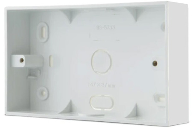 Plastikowa puszka do montażu natynkowego.