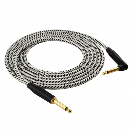 Red's Music GCF1230BW - Kabel instrumentalny – Jack 6.3mm / Jack 6.3mm kątowy – FOP kabel w oplocie - 3m