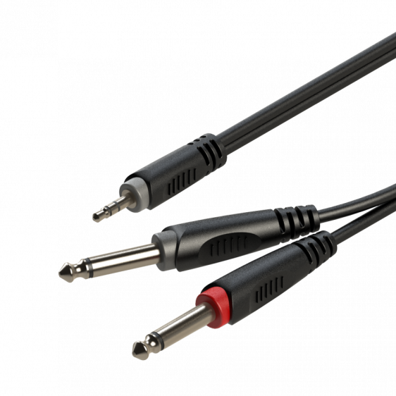 Profesjonalny, bardzo elastyczny kabel audio AC010 z wtykami 1 x Jack 3.5mm stereo - 2 x Jack 6.3mm mono 6 metrów.