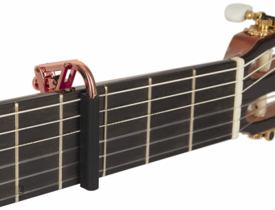 Precyzyjny mechanizm blokujący: Opatentowany system z dźwignią umożliwia szybkie zakładanie i zdejmowanie kapodastra bez konieczności ponownego strojenia instrumentu.
