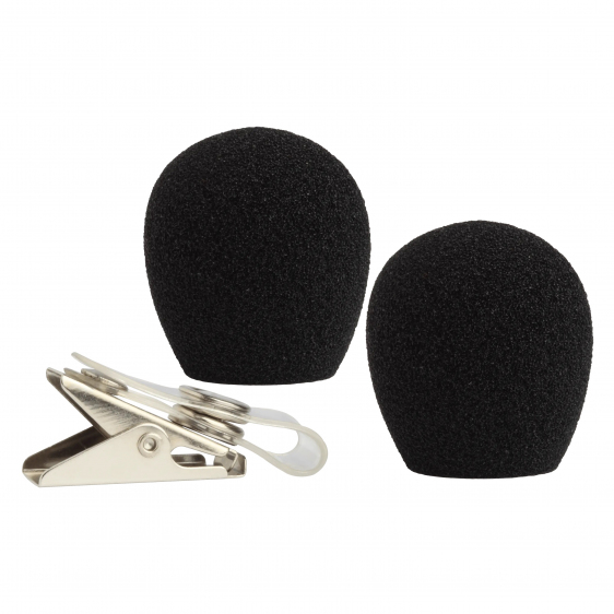 Zawiera dwie czarne owiewki oraz klips do odzieży do użycia z mikrofonami nagłownymi Shure WH10 oraz WH20.