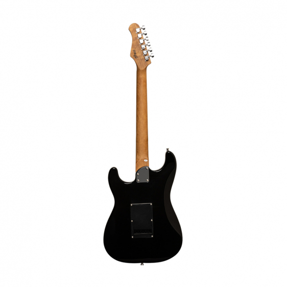 Gitara elektryczna Stagg SES-60 Black to instrument z serii SES, który łączy klasyczną, kultową stylistykę z nowoczesnymi rozwiązaniami, oferując muzykom wszechstronność tonalną i wygodę gry w przystępnej cenie. Korpus wykonany z litej olchy (Solid Alder) gwarantuje rezonansowe brzmienie i solidną podstawę tonalną, a konfiguracja przetworników HSS (Humbucker/Single/Single) sprawia, że jest to idealny model do eksploracji szerokiej gamy gatunków muzycznych, od bluesa i rocka, po metal. Czarny, elegancki kolor i wykończenie na wysoki połysk, w połączeniu z blokowymi inkrustacjami na podstrunnicy, nadają jej profesjonalny i zdecydowany wygląd.