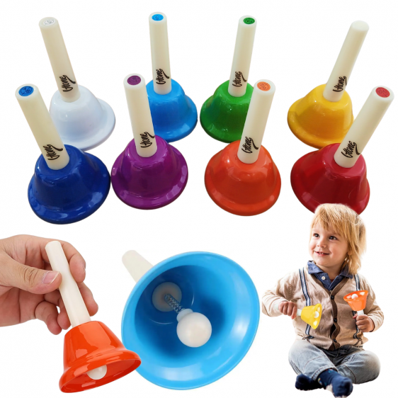 Dzwonki na rączce V-TONE RR8 to świetny instrument edukacyjny dla dzieci, który wprowadza najmłodszych w fascynujący świat muzyki ✅. Zestaw składa się z ośmiu dzwonków z rączką, które obejmują tony gamy diatonicznej w tonacji C-dur ✨. Każdy dzwonek ma inny kolor – od czerwonego po biały – co nie tylko ułatwia naukę, ale także dodaje zabawie atrakcyjności ⚡. Dzięki solidnemu wykonaniu z tworzywa ABS oraz stali, dzwonki są trwałe i odporne na zadrapania, co czyni je idealnym wyborem do intensywnego użytkowania przez dzieci❗